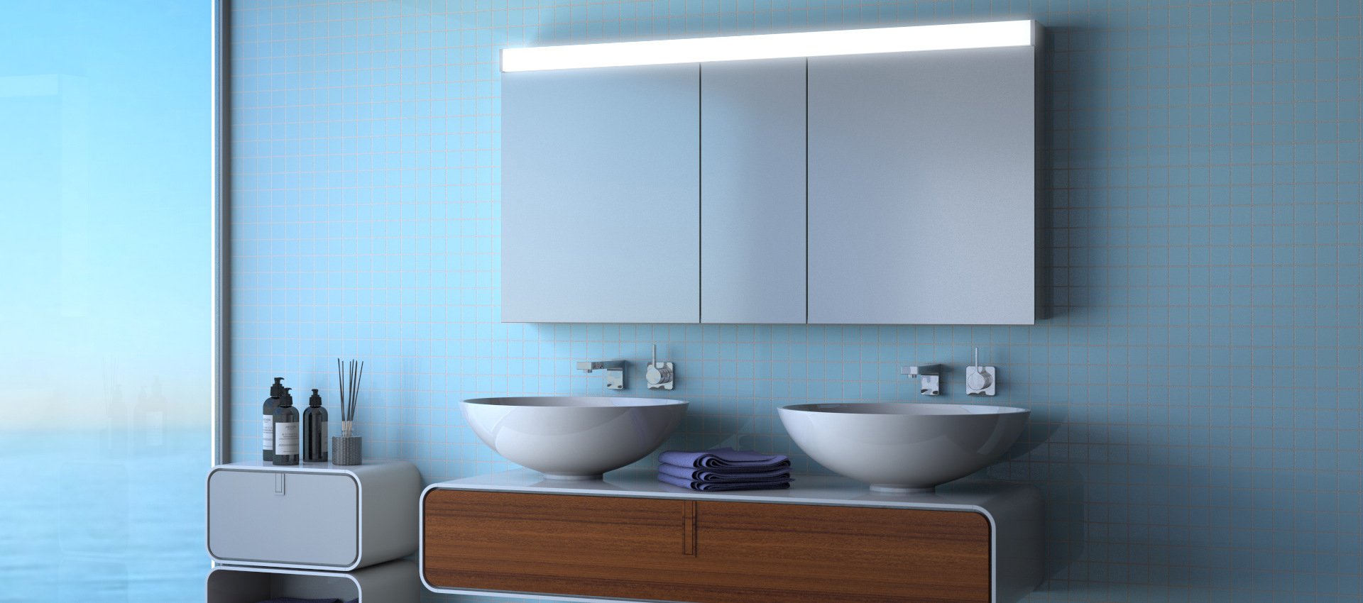 Keller Spiegelschränke AG_Spiegelschrank Puro mit Holzmöbel Publié 01.10.2019 à 1920 × 850 dans Keller Spiegelschränke AG_Spiegelschrank Puro mit Holzmöbel